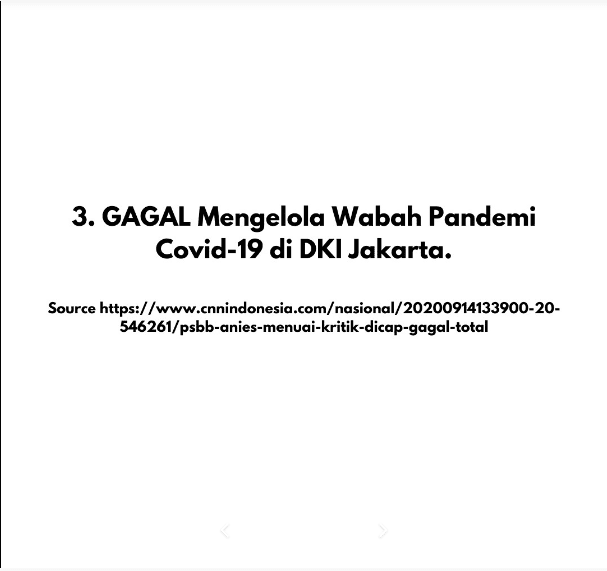 Beredar sebuah konten pada platform TikTok dengan narasi yang mengklaim Anies Baswedan gagal dalam mengelola wabah pandemi covid-19 di DKI Jakarta. Dalam unggahan tersebut tertera link sumber artikel yang merujuk pada artikel CNN berjudul โPSBB Anies Menuai Kritik, Dicap Gagal Total.โ
