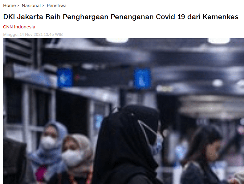 CNN Indonesia. (2021). DKI Jakarta Raih Penghargaan Penanganan Covid-19 dari Kemenkes. Diakses pada 9 Januari 2024 https://www.cnnindonesia.com/nasional/20211114091601-20-720876/dki-jakarta-raih-penghargaan-penanganan-covid-19-dari-kemenkes/amp
