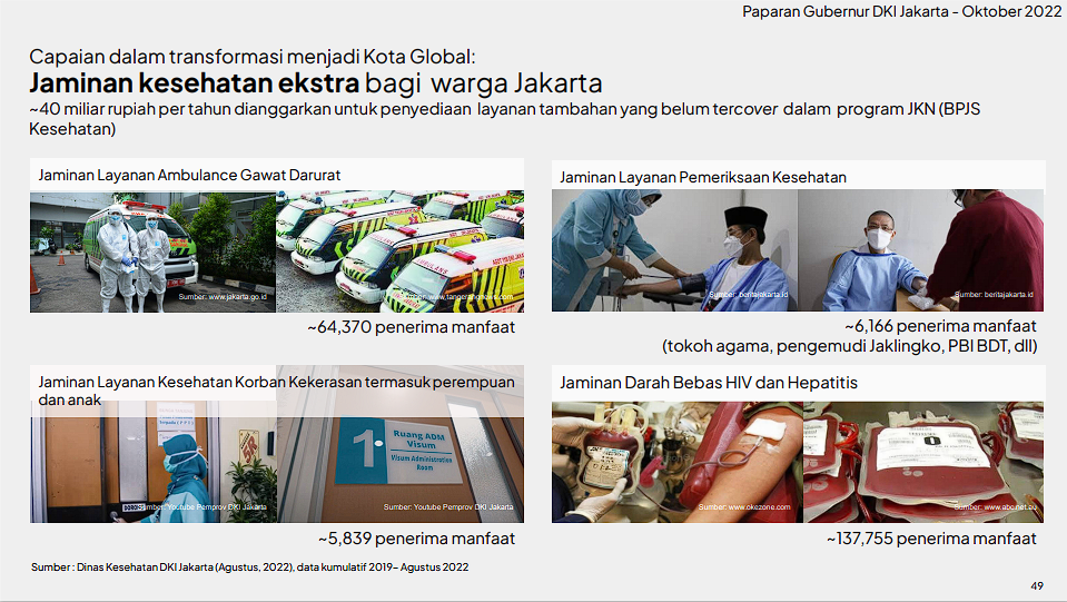 Namun, walaupun terhalang di lapangan Pemprov DKI Jakarta di era Anies tidak tinggal diam. Pemprov mengoptimalkan pelayanan kesehatan promotif dan preventif di kelurahan-kelurahan yang belum memiliki Puskesmas. Menjalankan kegiatan Upaya Kesehatan Berbasis Masyarakat (UKBM) dan Puskesmas Keliling. Selain itu, ada pula tim tenaga kesehatan yang tergabung dalam Tim Ketuk Pintu Layani Dengan Hati (KPLDH). Tim ini bertugas memberikan pelayanan kesehatan secara door to door.