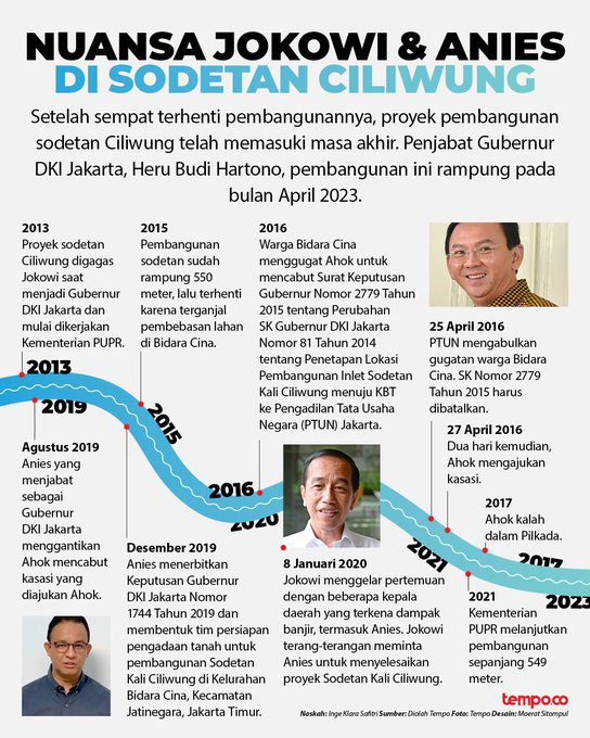 Zaki, M. F. & Wuragil, Z. (2023). Sodetan Ciliwung Sempat Tersumbat Pembebasan Lahan, Anies Penyebab atau Penyelamat?. Diakses pada 12 Januari 2024 dari https://fokus.tempo.co/read/1759357/sodetan-ciliwung-sempat-tersumbat-pembebasan-lahan-anies-penyebab-atau-penyelamat